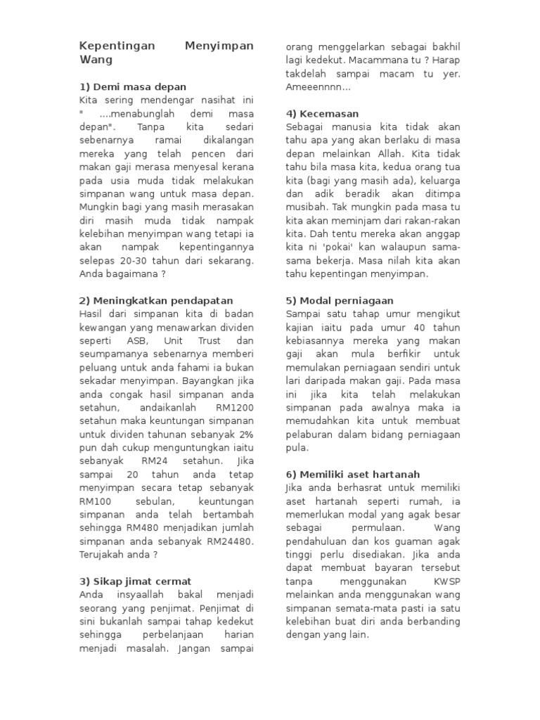 Kepentingan Menyimpan Wang Pdf